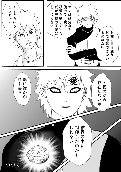 次回、我愛羅が、守鶴の茶釜と父様について語ります。