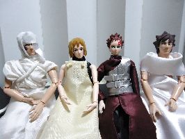| ってことで、四人そろって記念撮影♪ | カン「全員って割には、なんか人数足りない気もするが…」 我「テマリと父さまがいないな」 |