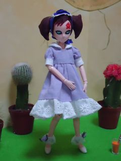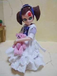 ということで、お忍用の我愛子衣装をご紹介(忍がお忍びってのも変だけど…) エプロンの下は、ラベンダー色のワンピース(この度、新調) |