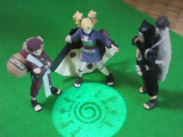 カン「屋上に上がってみよう」 我「狭いな。オレが、デイダラと戦った場所は、もっと広かったが…?」 カン「突貫工事だ。贅沢いうな」 (直径30センチ。我愛羅とカンクロウは、約3センチ) |