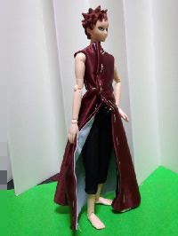| ナルト「おっ。我愛羅。カッコいいってばよ〜」 我「少しは様になっているか?」 カン「そうだな。ベストの左肩が少し太いようだから、この後修正しよう」 (テープなので修正も簡単に出来ます) 我「着用してみて、いろいろ分かったようだな」 カン「オーダーメードの醍醐味じゃん。なら、最後は、サンダルだな」 |