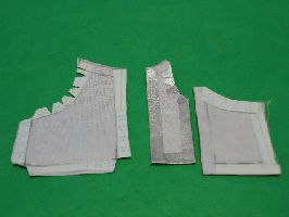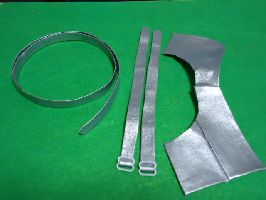 カン「お次は、ベストだ。本来、ひょうたんを背中にくくりつけるためのものだが、これはこれでカッコいいじゃん」 我「薄手の皮風のシルバーの布か…。まさかと思うが、両面テープで組み立ててるのか?」 |