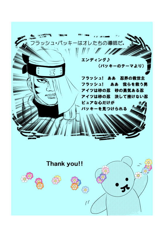 以上、映画「ted」(R-15)パロディ、砂忍で「kuma」編でした。 画像クリックで、おまけの「暁-デイダラとサソリ」が始まります。(3p)