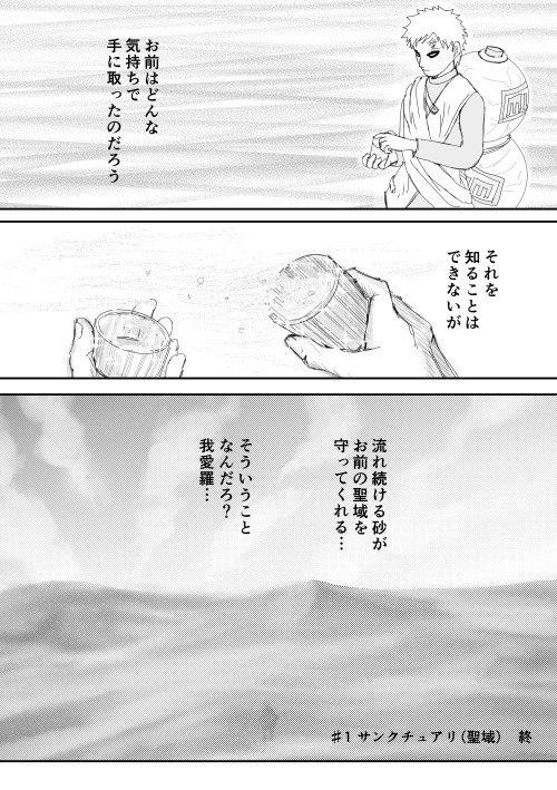 (画像クリックで進みます)21 新世代をネタにした新シリーズを始めました。 砂の中には過去の歴史が埋まっている。 あんなことやこんなこと、そして、人に知られたくないことも…。 っということで木ノ葉の次世代・いたずらっ子たちが砂の中からお宝を見つけてきては バキ校長先生が青ざめるという遺跡発掘もどきのお話です。(予定) (2015/01/04)